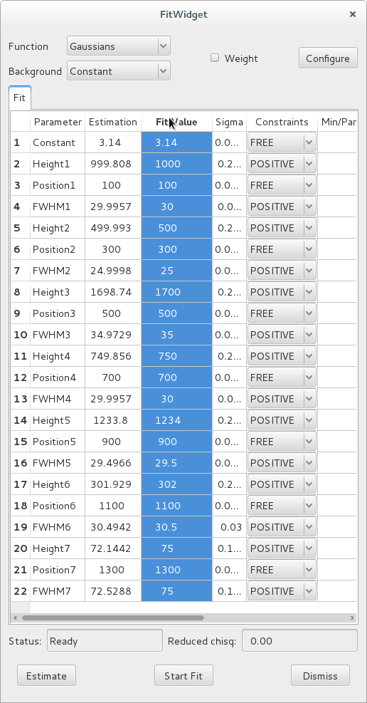 After all configuration parameters and all constraints are set according to your preferences, you can click the Start Fit button. This runs the fit and displays the results in the Fit Value column of the table.